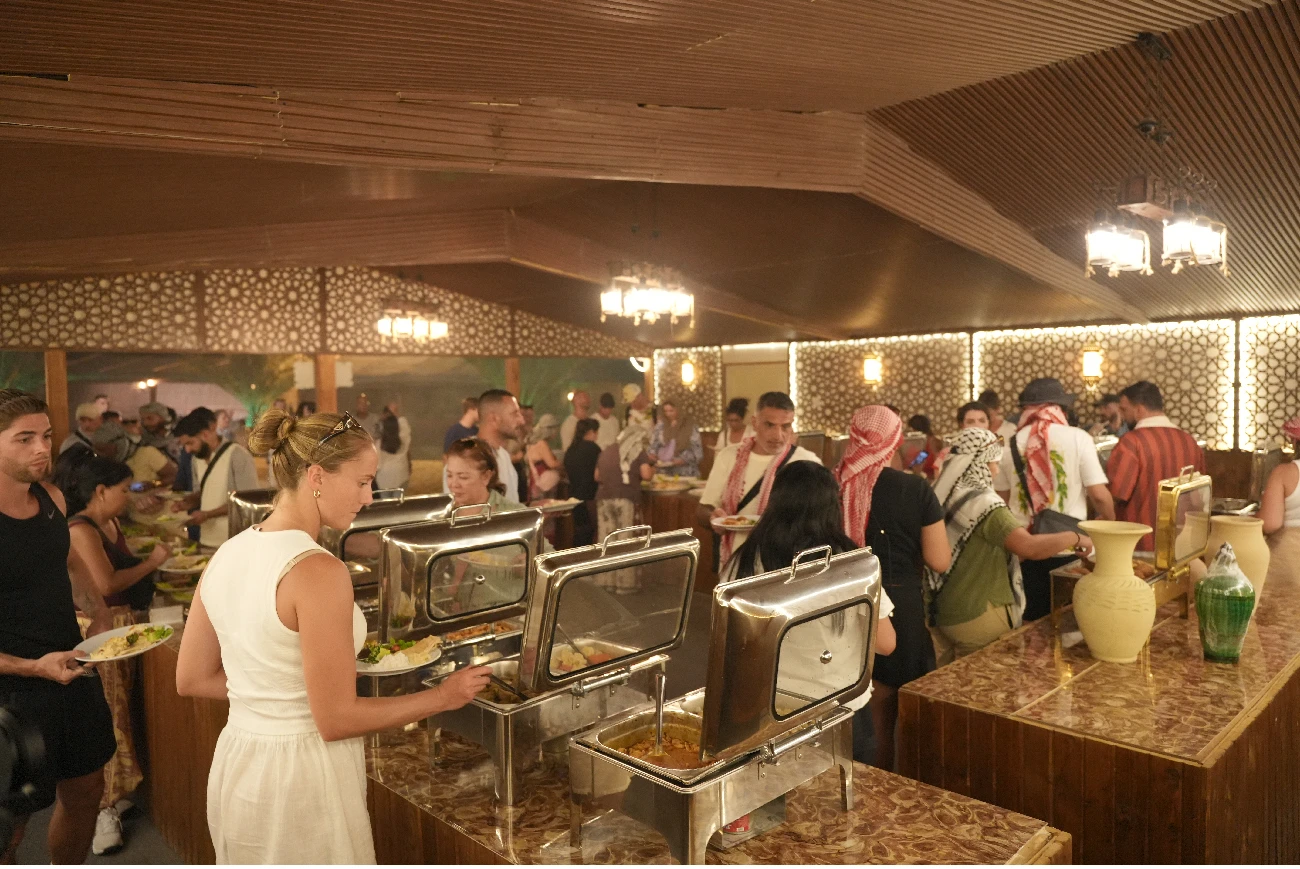 Upon arrival, you’ll be greeted with a warm welcome drink of Arabic coffee, dates, and soft beverages, before settling into comfortable majlis seating.