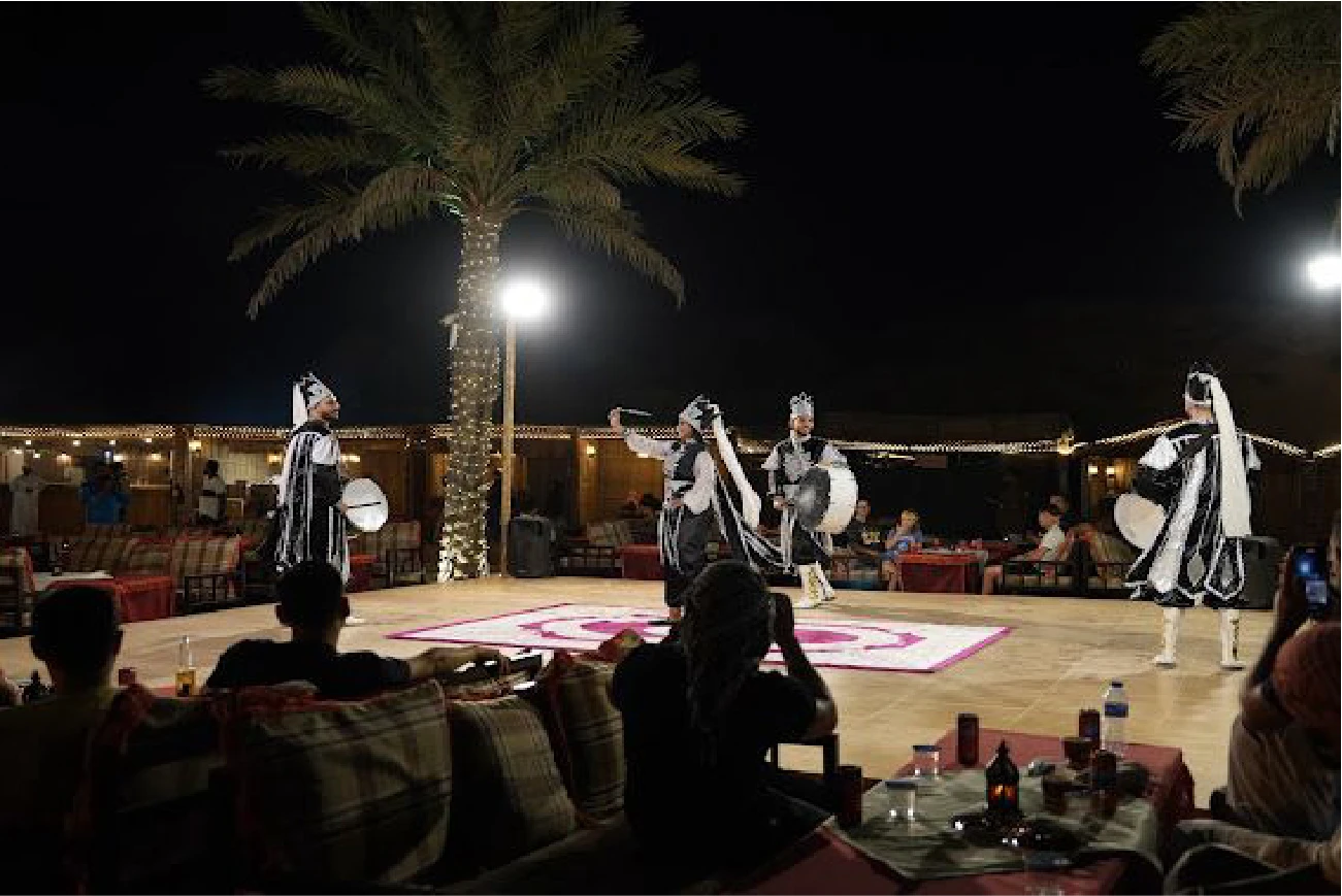 Camel ride, henna painting, traditional attire photo session, light cultural activities (Tanoura, fire show, Belly dance, shisha)